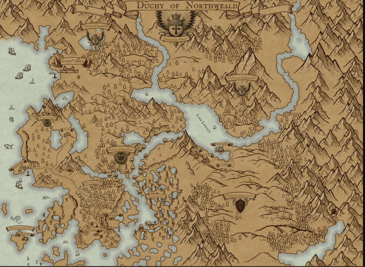Across the vast and varied expanse of Northweald, each county rises as a proud pillar of strength, prosperity, and identity, contributing uniquely to the Duchy’s grandeur: